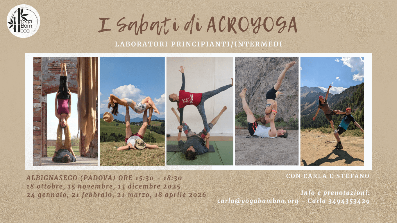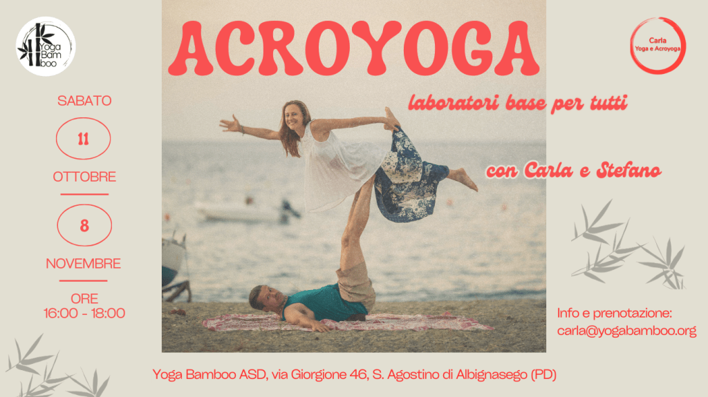 * Quattro workshops di acroyoga open level (no prerequisiti per partecipare)